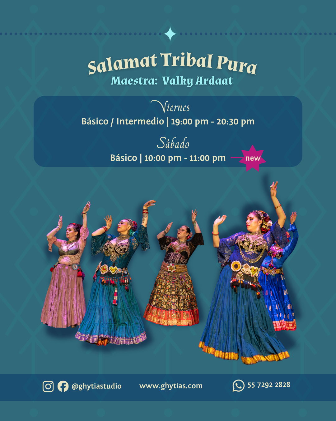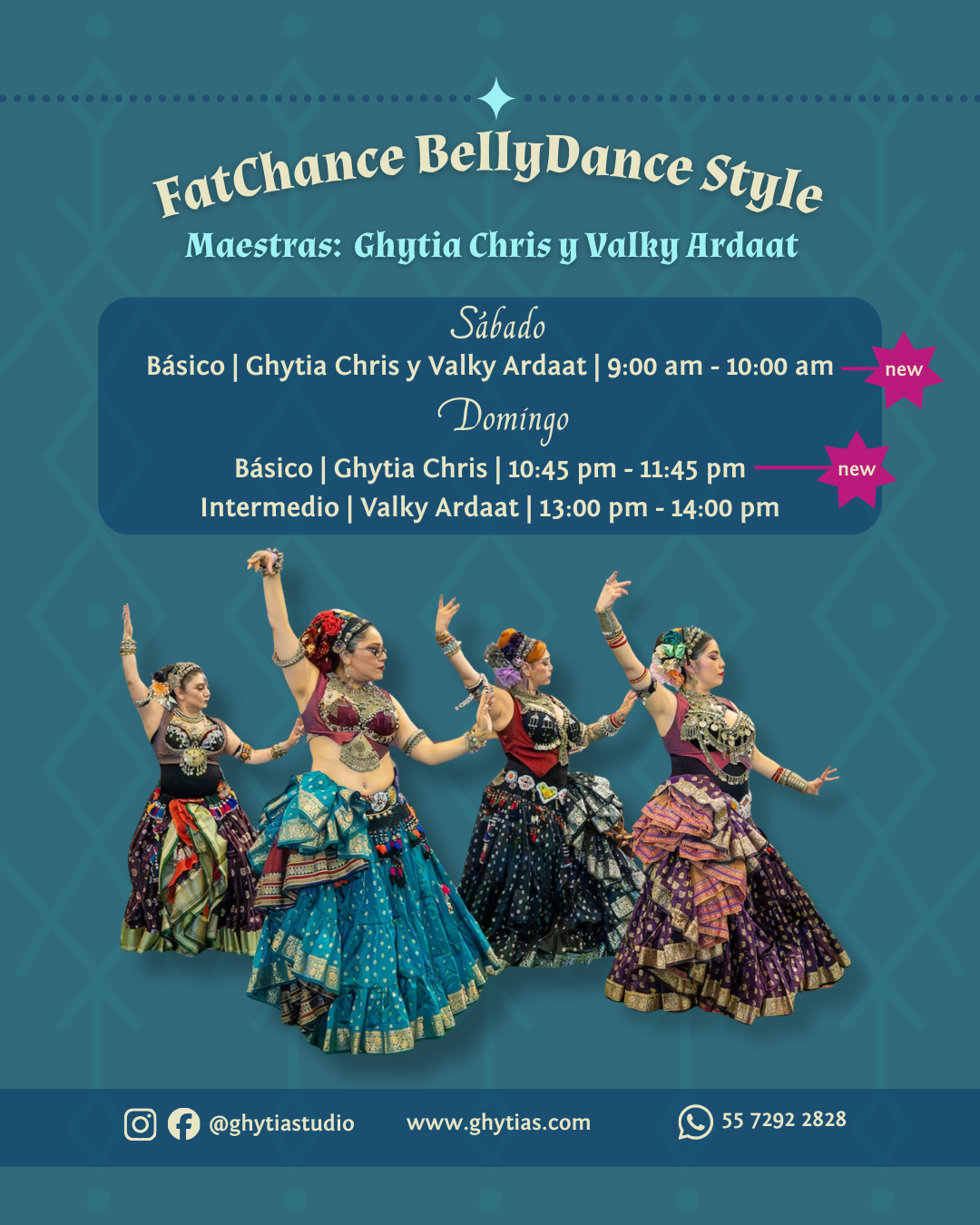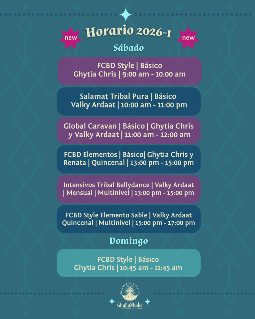 Conoce las distintas opciones, nuevas maestras y sus clases, estilos, horarios que tenemos en Ghytiastudio en el ciclo 2026, en clases presenciales y online.